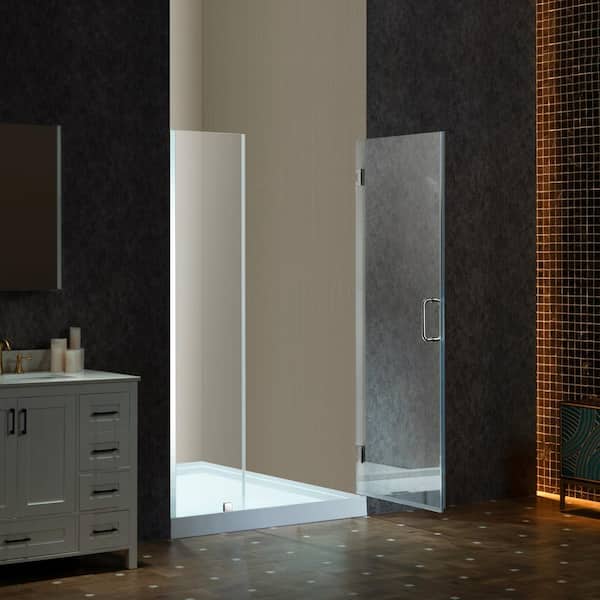 50 in. W x 76 in. H Pivot Frameless Shower Door in Chrome with 3/8 in. (10 mm) Clear Glass
