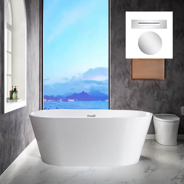59 in. X 29.5 in. Acrylic FlatBottom Double Ended Soaking Bathtub with Chrome Overflow and Drain in White