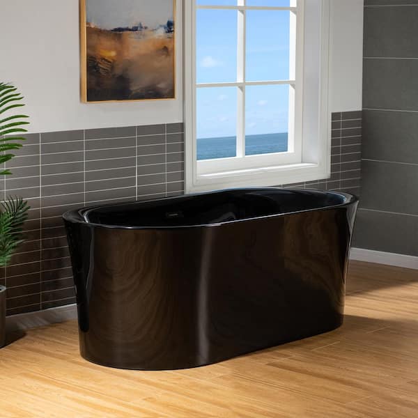 59 in. x 29.5 in. Soaking Bathtub with Center Drain in Black with Matte Black Trim