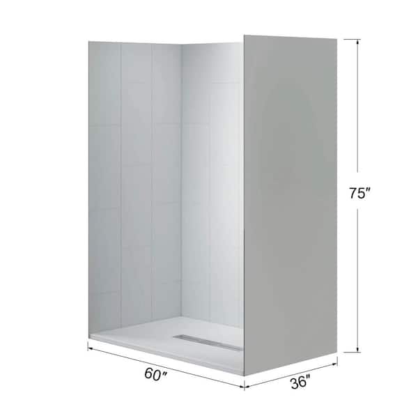 60 in. L x 36 in. W x 75 in. H 4-Pieces Alcove Shower Kit with Glue Up Shower Wall and Shower Pan in White/White-BN