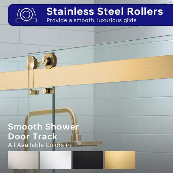 60 in. W x 76 in. H Double Sliding Frameless Shower Door in Brushed Gold Finish with 5/16 in. Clear Glass