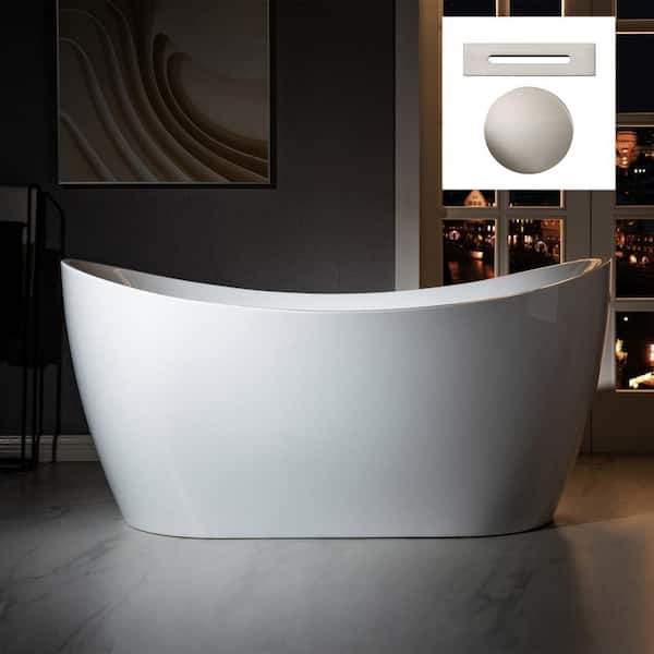 Jaxon 59 in. Acrylic FlatBottom Double Slipper Bathtub with Brushed Nickel Overflow and Drain Included in White