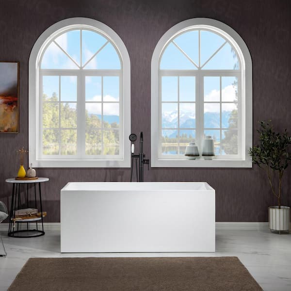 Plainfield 59 in. Acrylic FlatBottom Rectange Bathtub with Oil Rubbed Bronze Overflow and Drain Included in White
