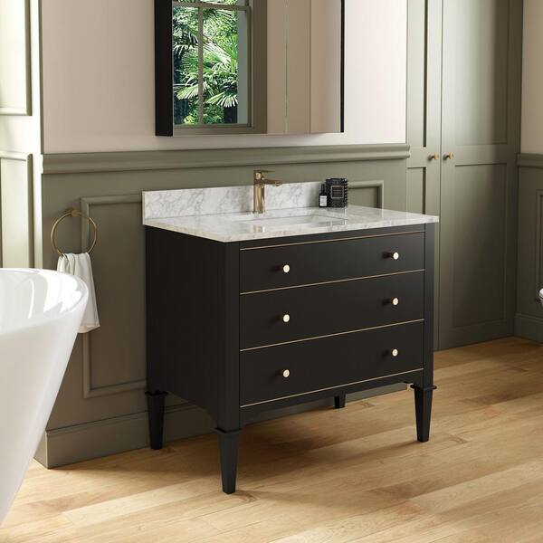 Roma 37 in. W x 22 in. D x 34 in. H Bath Vanity in Espresso with Carrara White Marble Vanity Top