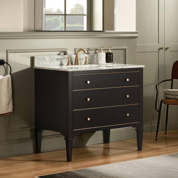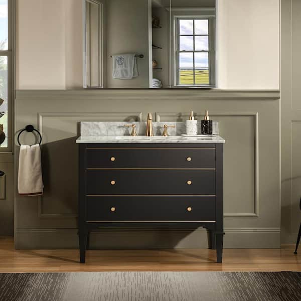 Roma 43 in. W x 22 in. D Bath Vanity in Espresso with Marble Vanity top in Carrara White with White Basin