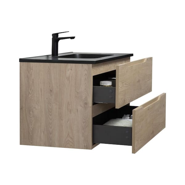 SD 35.4 in. W x 18.6 in. D Single Sink Floating Bath Vanity in Evita Oak Wood with Black Quartz Sand Composite Top