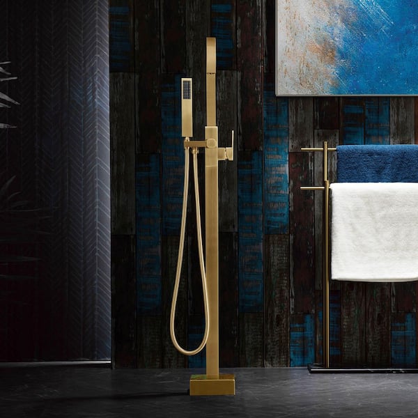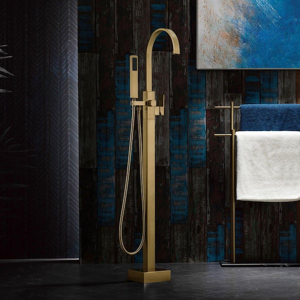 Single-Handle Freestanding Tub Faucet with Hand Shower in Brushed Gold