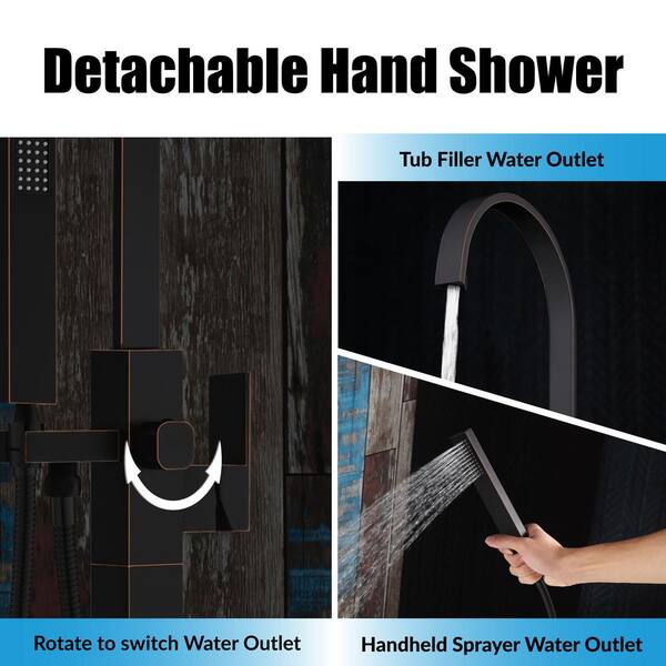 Single-Handle Freestanding Tub Faucet with Hand Shower in Oil Rubbed Bronze