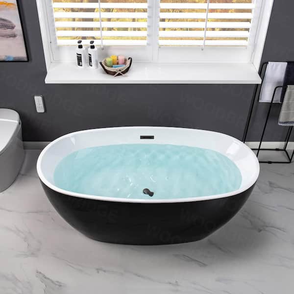 Troyes 59 in. Acrylic FlatBottom Double Ended Bathtub with Matte Black Overflow and Drain Included in Black