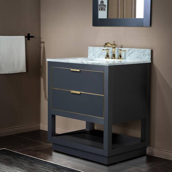 Venice 31 in.W x 22 in.D x 38 in.H Bath Vanity in Gray with Marble Vanity Top in White with White Sink
