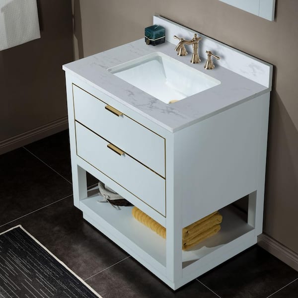 Venice 31 in.W x 22 in.D x 38 in.H Bath Vanity in White with Engineered stone Vanity Top in White with White Sink