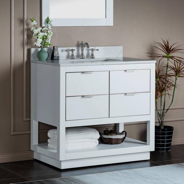 Venice 37 in.W x 22 in.D x 38 in.H Bath Vanity in White with Engineered stone Vanity Top in Fish Belly with White Sink