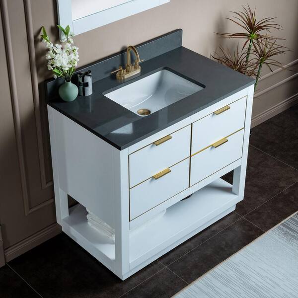 Venice 43 in.W x 22 in.D x 38 in.H Bath Vanity in White with Engineered stone Vanity Top in Dark Gray with White Sink