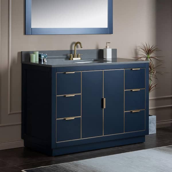 Venice 49 in.W x 22 in.D x 38 in.H Bath Vanity in Navy Blue with Dark Gray Engineered stone Vanity Top with White Sink