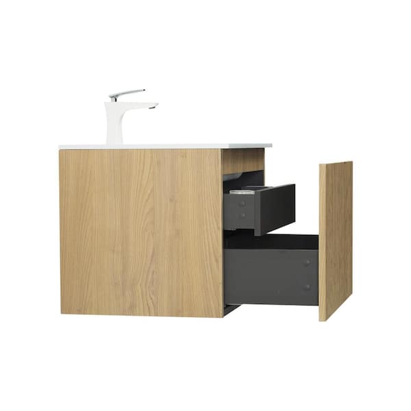 WY 23.6 in. W x 18.9 in. D Single Sink Floating Bath Vanity in Yellow Oak Wood Finish with White Resin Top