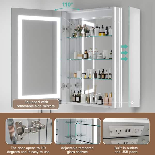 20 in. W x 32 in. H Rectangular Silver Aluminum Recessed/Surface Mount left Medicine Cabinet with Mirror and LED Light