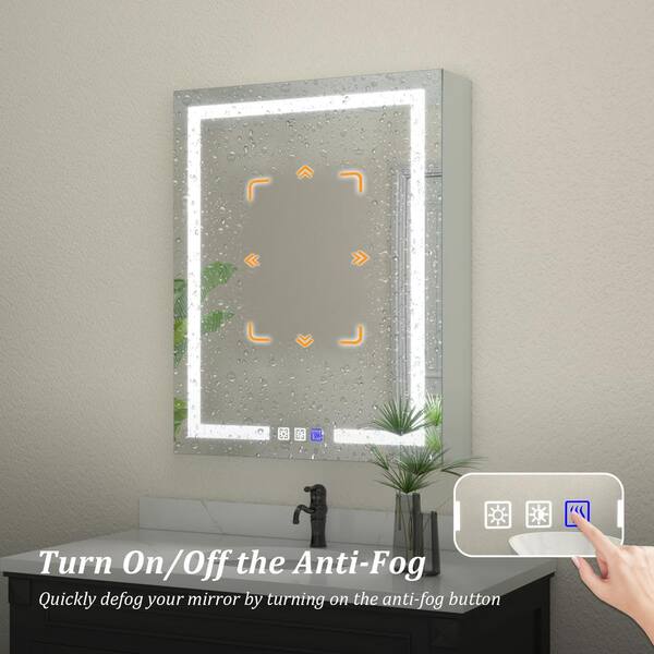 24 in. W x 30 in. H Rectangular Silver Aluminum Recessed/Surface Mount Right Medicine Cabinet with Mirror and LED Light
