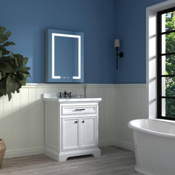 24 in. W x 32 in. H Rectangular Silver Aluminum Recessed/Surface Mount left Medicine Cabinet with Mirror and LED Light