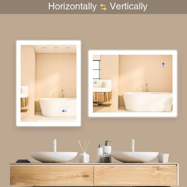 24 in. W x 32 in. H Small Rectangular Frameless Anti-Fog Wall Bathroom Vanity Mirror in Silver