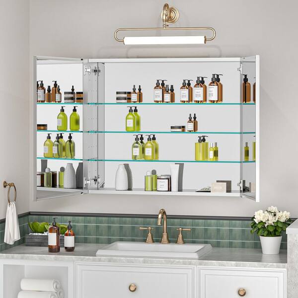 36 in. W x 30 in. H Rectangular Silver Aluminum Recessed/Surface Mount Medicine Cabinet with Mirror