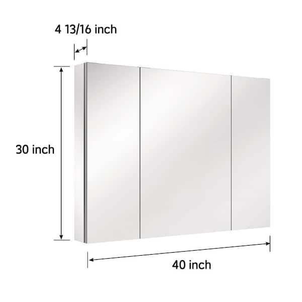 40 in. W x 30 in. H Medium Rectangular Silver Aluminum Recessed/Surface Mount Medicine Cabinet with Mirror
