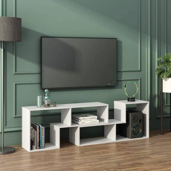 59.1 in.to 86.6 in. White Multi-functional TV Stand Fits TV's up to 60 in. With Open Layers