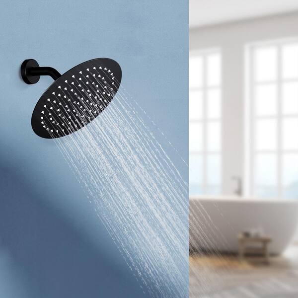 1-Spray Patterns with 1.8 GPM 10 in. Wall Mount Rain Fixed Shower Head in Matte Black