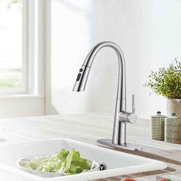 17.7 in. Single Handle Pull Down Sprayer Kitchen Faucet with 360° Swivel Spout in Brushed Nickel