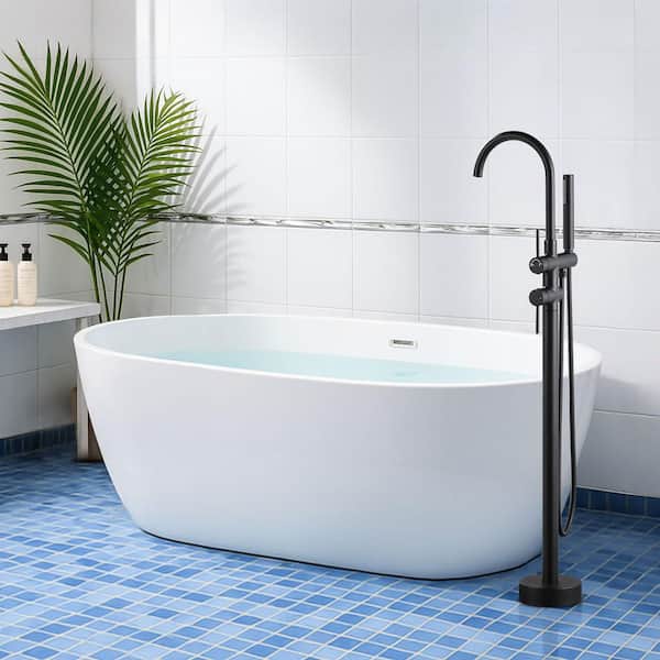 2-Handle Freestanding Tub Faucet with Hand Shower in Black