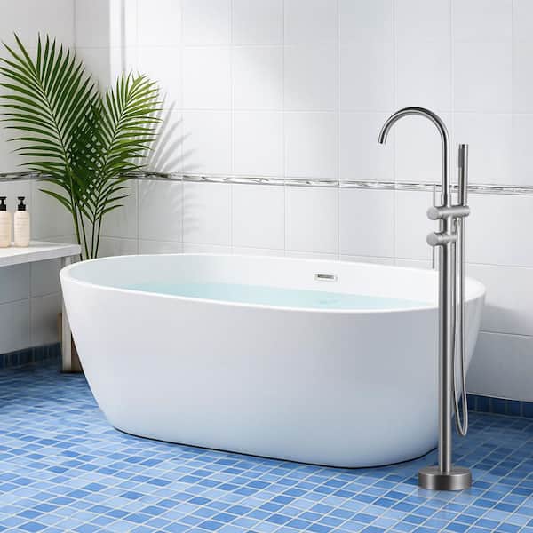 2-Handle Freestanding Tub Faucet with Hand Shower in Brushed Nickel