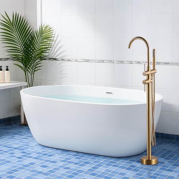 2-Handle Freestanding Tub Faucet with Hand Shower in Gold