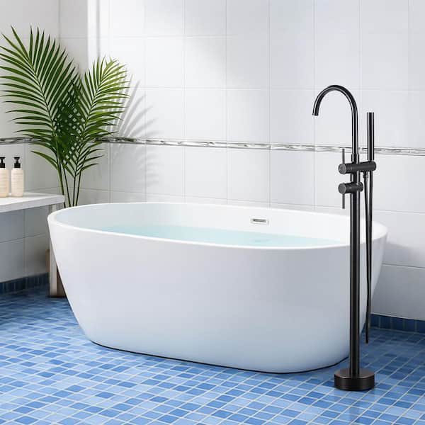 2-Handle Freestanding Tub Faucet with Hand Shower in Oil Rubbed Bronze