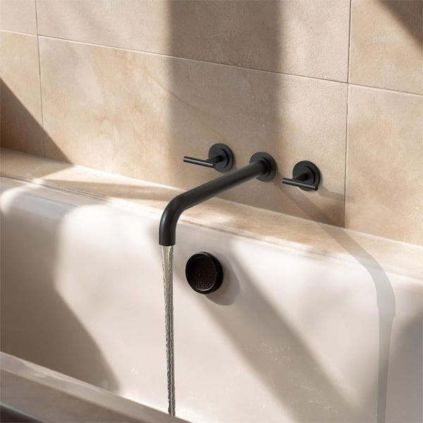 2-Handle Wall Mount Roman Tub Faucet with 12 in. Long Spout Reach in Matte Black (Valve Included)