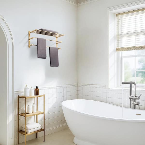 24 in. Brushed Gold 3-Tier Wall Mounted Towel Rack with Mounting Hardware in Stainless Steel