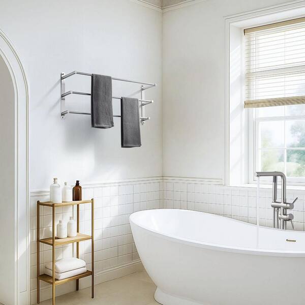 32 in. Brushed Nickel 3-Tier Wall Mounted Towel Rack with Mounting Hardware in Stainless Steel