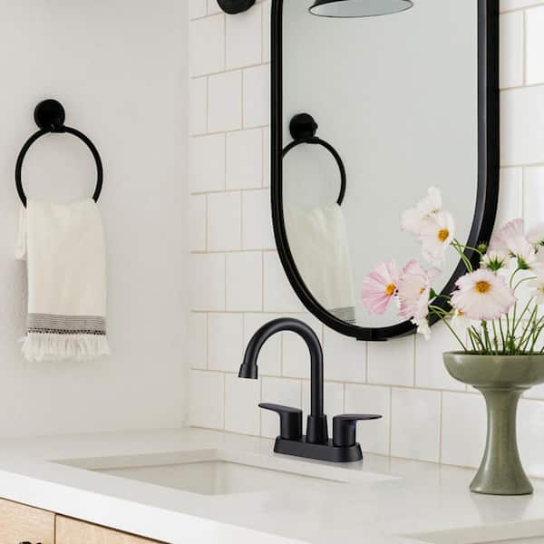 4 in. Center Set Double Handle High Arc Bathroom Faucet in Black