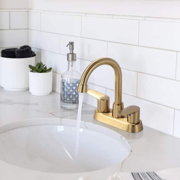 4 in. Center Set Double Handle High Arc Bathroom Faucet in Gold