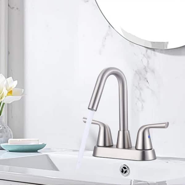4 in. Centerset Double Handle High Arc Bathroom Faucet with Drain Kit Included in Brushed Nickel