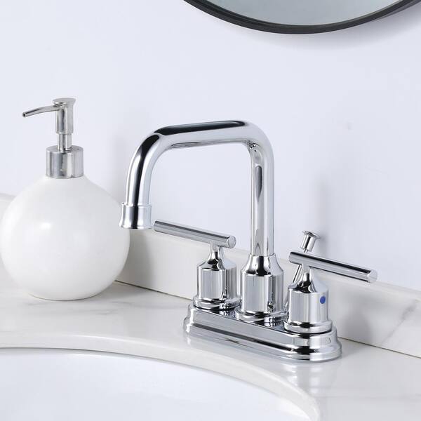 4 in. Centerset Double Handle High Arc Bathroom Faucet with Drain Kit Included in Polished Chrome