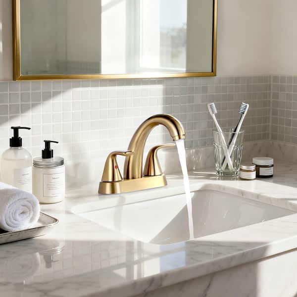 4 in. Centerset Double Handle Mid Arc Bathroom Faucet with Drain Kit Included in Gold