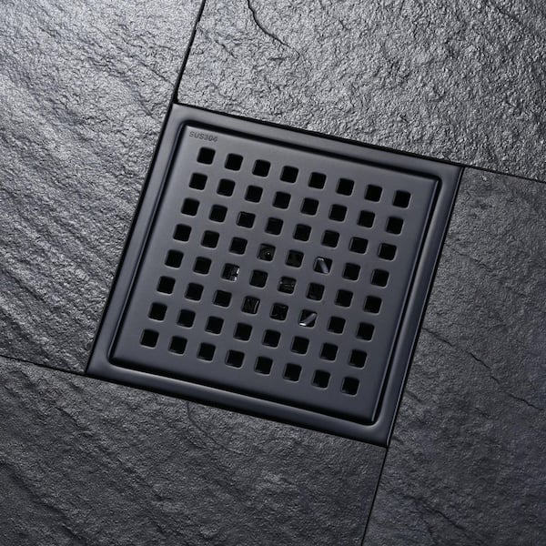 5.9 in. x 5.9 in. Stainless Steel Square Shower Drain with Strainer in Matte Black