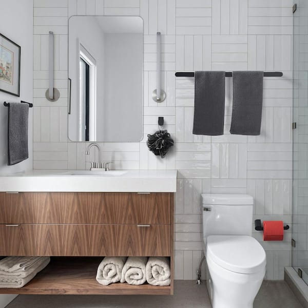 5-Piece Bath Hardware Set Rounded Corner with Mounting Hardware in Matte Black