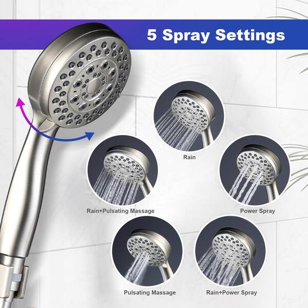 5-Spray 1.75 GPM 3.5 in. Wall Mount Handheld Shower Head in Brushed Nickel