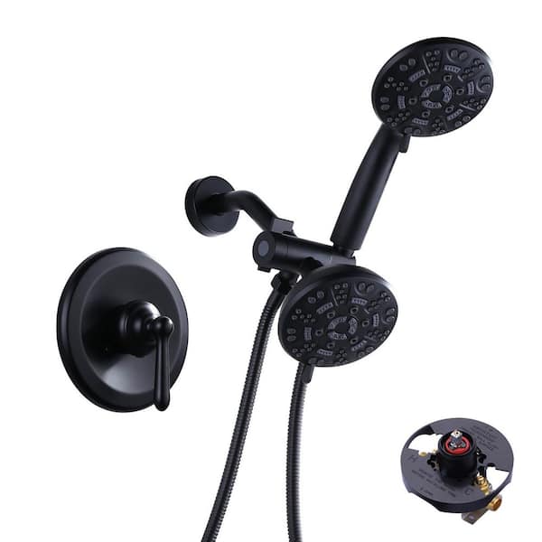7-spray 4 in. Wall Mount Dual Shower Head and Handheld Shower Head 1.8 GPM in Matte Black
