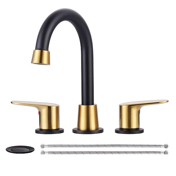 8 in. Widespread Bathroom Sink Faucet with 2-Handles in Gold and Black
