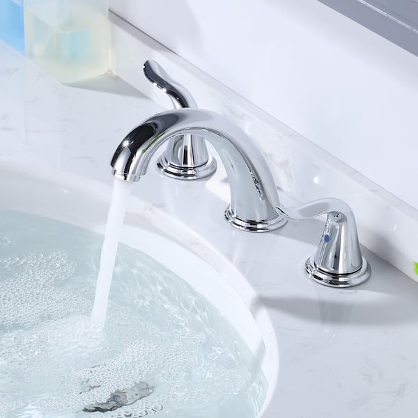 8 in. Widespread Double Handle Bathroom Faucet with Drain Kit in Polished Chrome