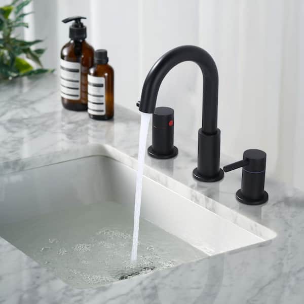 8 in. Widespread Double Handle Bathroom Faucet with Pop-Up Drain in Black