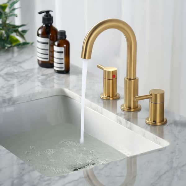 8 in. Widespread Double Handle Bathroom Faucet with Pop-Up Drain in Brushed Gold