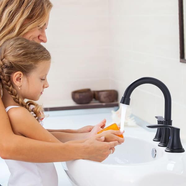 8 in. Widespread Double Handle Bathroom Faucet with Pop Up Sink Drain and Corrosion Resistant in Black
