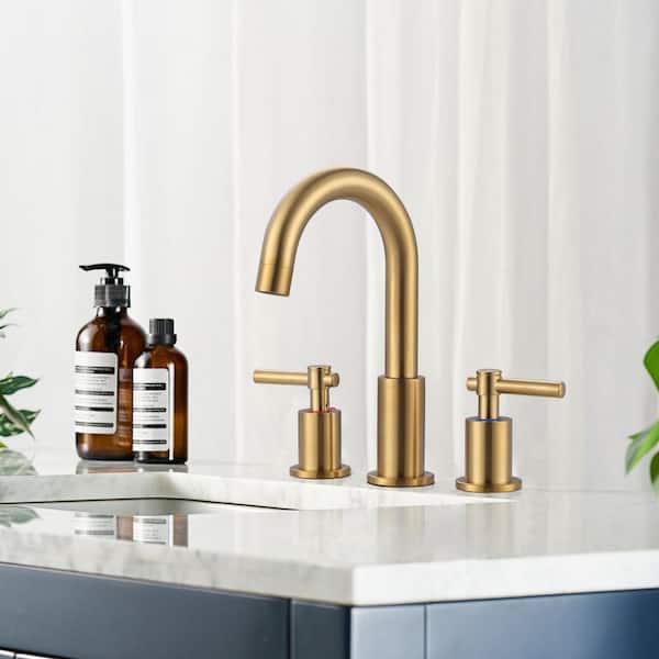 8 in. Widespread Double-Handle High-Arc Bathroom Faucet with Pop-Up Drain 3-Hole Spot Resistant Spout in Brushed Gold